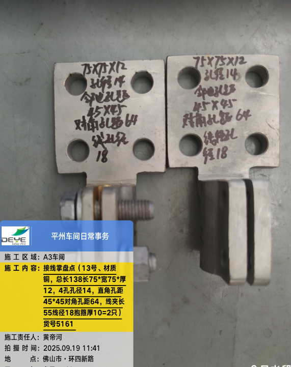铜 接线掌 总长138 掌长75 掌宽75 掌厚12 孔数4 孔径φ14 邻边孔距45*45 对角孔距64 线夹长度55 线管内径φ18 抱箍厚度10 有图纸 内部编号13