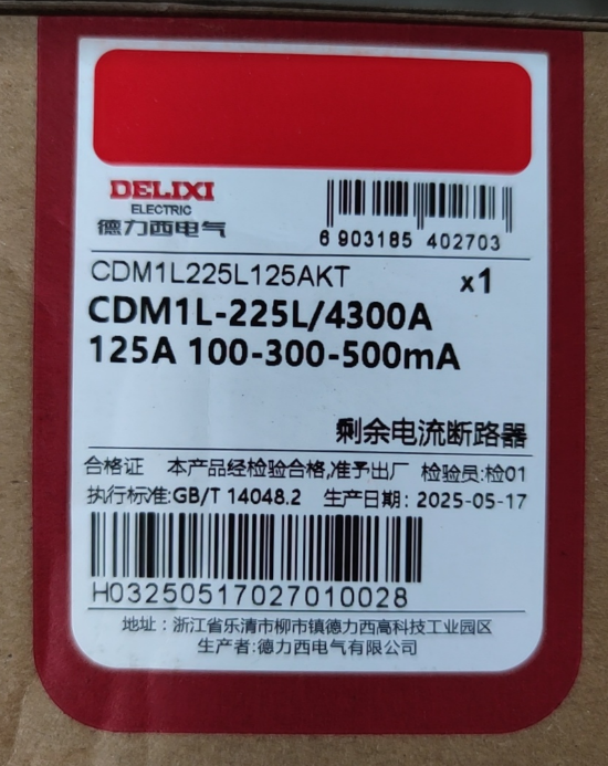 德力西 剩余电流断路器CDM1L-225L/4300A 400V 125A 100-300-500mA 石狗站