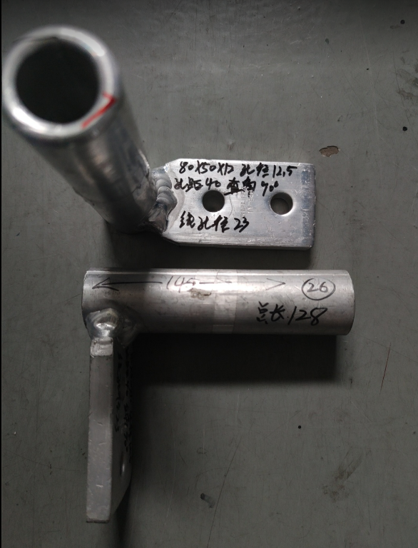 铝 接线掌 总长128 掌长80 掌宽50 掌厚12 孔数2 孔径φ12.5 邻边孔距40*40 对角孔距无 线夹长度145 线管内径φ23 抱箍厚度7 有图纸 内部编号26