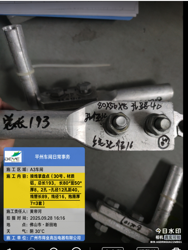 铝 接线掌 直型总长193 掌长80 掌宽50 掌厚8 孔数2 孔径φ12 邻边孔距40*40 对角孔距无 线夹长度89 线管内径φ16 抱箍厚度φ7 L型尺寸看描述 有图纸 内部编号30